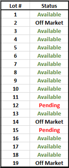 All lots are level and have street frontage.